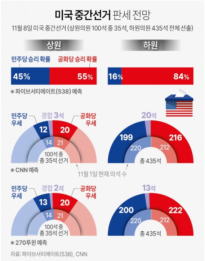 상원 하원 주지사를 비롯한 여러 선거가 이번 중간선거에서 단번에 결정된다. 1 day ago美 중간선거 상원 여전히 초박빙민주당 선전. 2 days ago미국 중간 선거.
